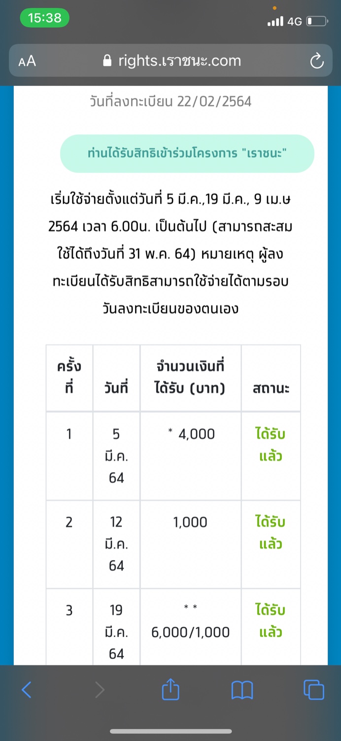 ได้สิทธิ์เราชนะแล้ว ในแอพ G - walletขึ้นว่ายังไม่ได้ลงทะเบียนเรียน