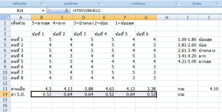 ถ้าเราต้องการหาค่าเฉลี่ยกับค่าSD แต่ จำนวนคนมีถึง 400คน ทำยังไงดีครับ เอามาใส่ทีละแถวแบบในรูป ใส่ไม่ไหวแน่ๆ