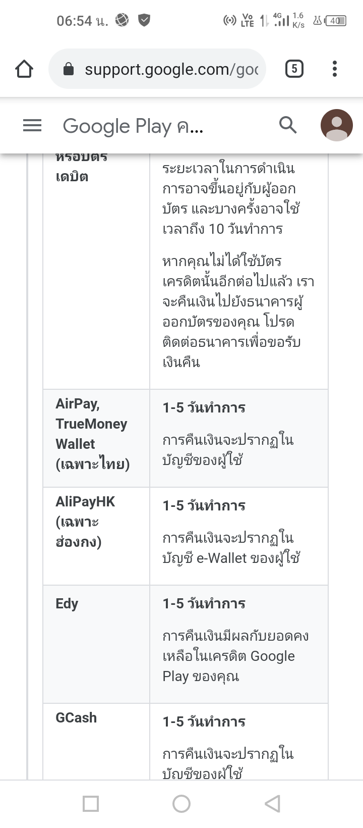 ใน google เขียนไว้ว่าใช้เวลาคืนเงิน 1-5 วัน