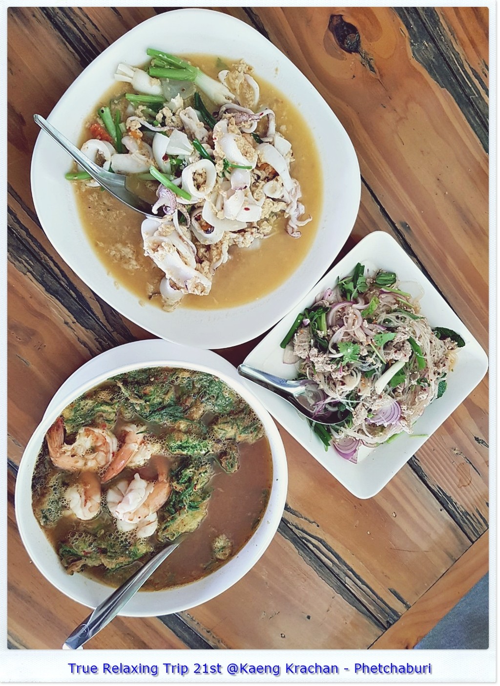 ทริปนี้เป็นทริปเบาๆ ไม่เร่งรีบ กว่าจะออกเดินทางก็ปาไป 10.30 แล้ว เอาตรงๆคือออกมาละลืมของเลยต้องกลับไปเอา เลยช้าไปนิด แต่ไม่เป็นไร ทริปสโลไลฟ์ซะอย่าง จะออกกี่โมงก็ได้ เดิมแรกๆกะว่าจะไปหาข้าวเที่ยง ณ ตอนบ่าย 2 กินที่ร้านต้นไม้ใบหญ้าคาเฟ่ คือเคยเปิดดูรีวิวเห็นมีขายอาหารด้วย แต่ตอนไปเค้าไม่มีขายอาหารคาวแล้ว สงสัยรีวิวที่ดูเป็นรีวิวเก่าๆ แต่วิวสวยจริงนะ แต่ไม่สนใจ เพราะ ณ จุดนั้นหิว เลยหาร้านอาหารใหม่มันตรงนั้นเลย ไปได้ที่ร้านกษิรัตน์ สภาพร้านดูใช้ได้ มีห้องน้ำสะอาด อาหารราคาไม่แพงเลยเมื่อเทียบกับปริมาณ กุ้ง หมึก สดดี สั่งไป 3 อย่าง รอไม่นาน ชอบตรงที่เค้าเอาอาหารมาเสิร์ฟทีเดียวเลย ไม่มาทีละจานสองจาน หมึกผัดไข่เค็ม แกงส้มชะอมกุ้ง และลาบวุ้นเส้น ถือว่าดี ใช้ได้ มื้อนี้หมดไป 450 บาทเท่านั้น
