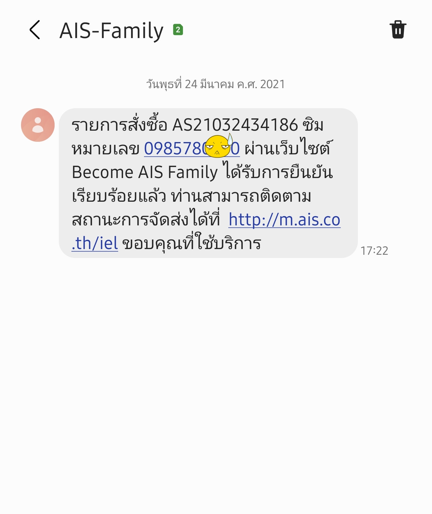 ○ ขอนุญาต สอบถาม AIS คือผมสั่งซื้อ ซิมการ์ด ออนไลน์ จาก AIS > ตั้งแต่ 24 มี.ค. 2564