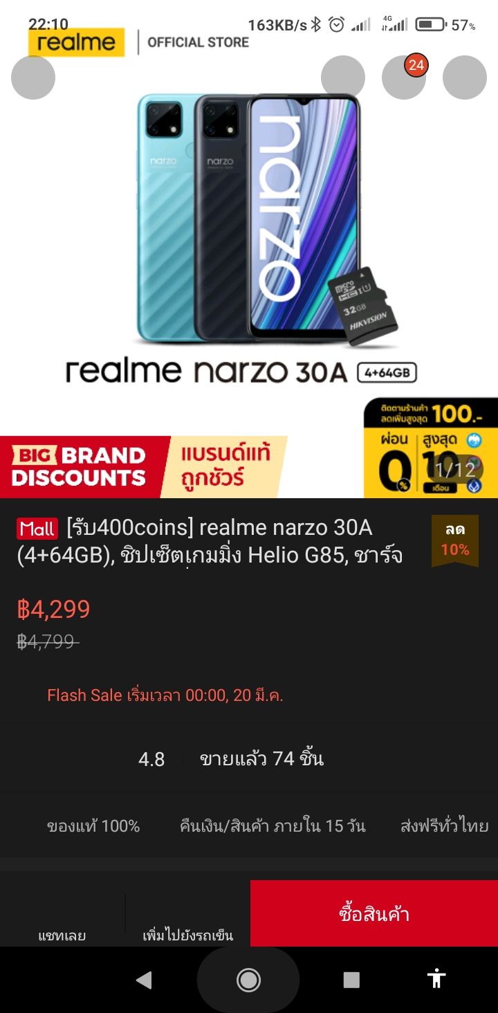 ราคาหลัก จริงๆ คือ 4,599 บาท อ้างอิง ราคา narzo 30A (realme.com)
