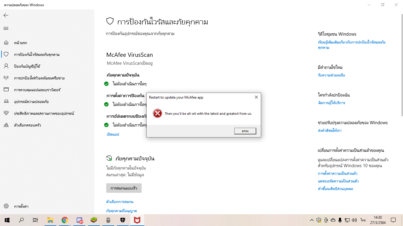 เรื่องเก่าจบได้ไม่นาน เรื่องใหม่มาอีก คือตอนนี้ผมอยากจะจะลบหรือปิดโปรแกรมMcafeeมากเลยแต่ ผมไม่รู้จะทำยังไงต่อดี 5 5 5