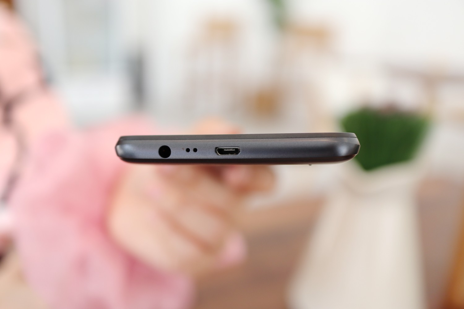 ด้านล่างตัวเครื่องจะมีช่องเสียบหูฟังขนาด 3.5 มม./ ไมค์สนทนา / พอร์ต microUSB