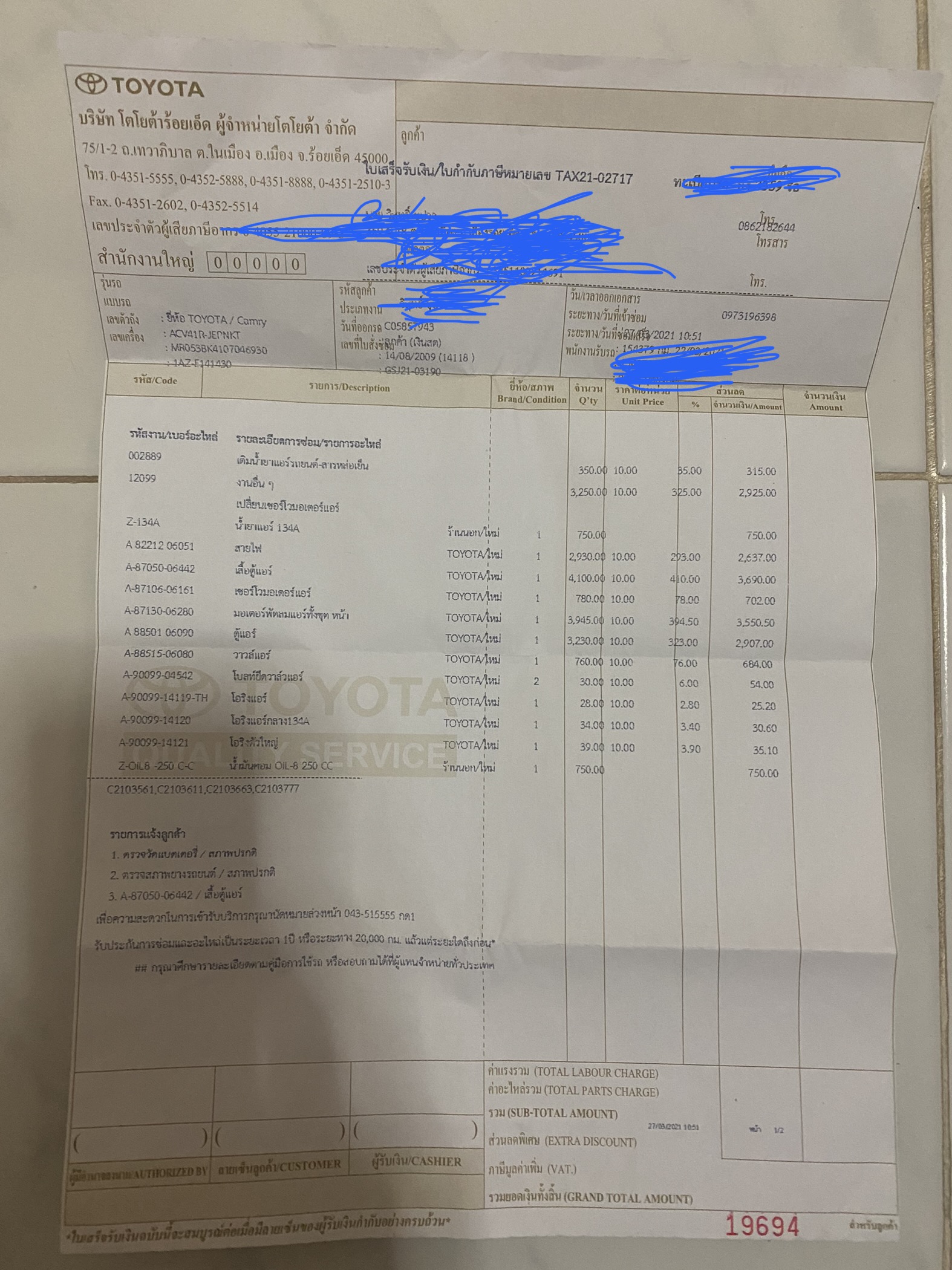 - ต่อมาช่างโทรมาเรื่อยๆว่าต้องรื้อจุดต่างๆเพิ่ม+ซื้ออะไหล่เพิ่ม (เราไม่มีความรู้เรื่องช่าง,เครื่องยนต์ อีกทั้งถ้าเราไม่โอเคก็ไม่ได้ เพราะไปดูช่างได้รื้อระบบรถแล้ว)ต้องเพิ่มเงินเป็น12,000 ต่อมาเพิ่ม1x,xxx สุดท้ายซ่อมเสร็จราคา 20,000 บาท ใช้เวลา 6 วัน รับประกัน 1 ปี