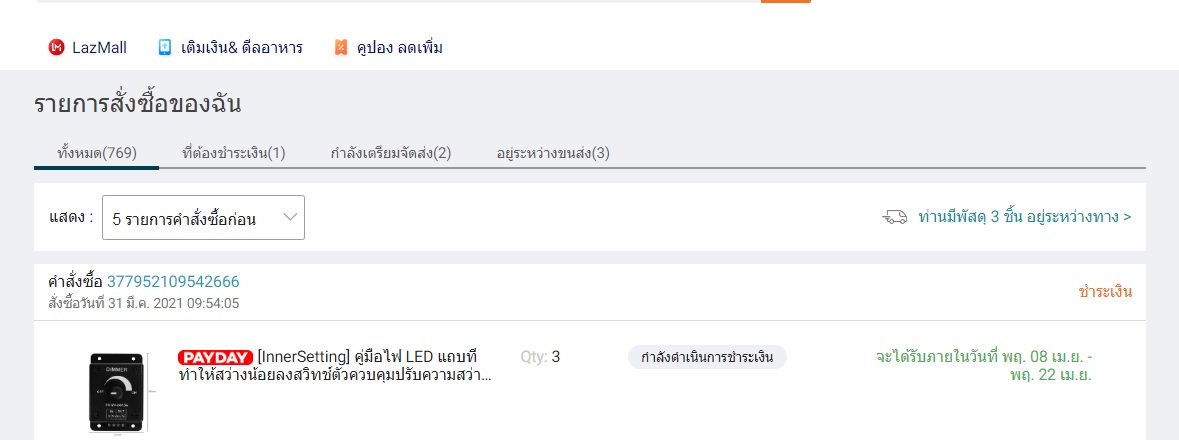 สั่งของผ่าน Lazada จ่ายเงินเรียบร้อย แต่ยังขึ้นว่ารอการชำระเงิน เงินหักออกจากบัญชีธนาคารแล้ว