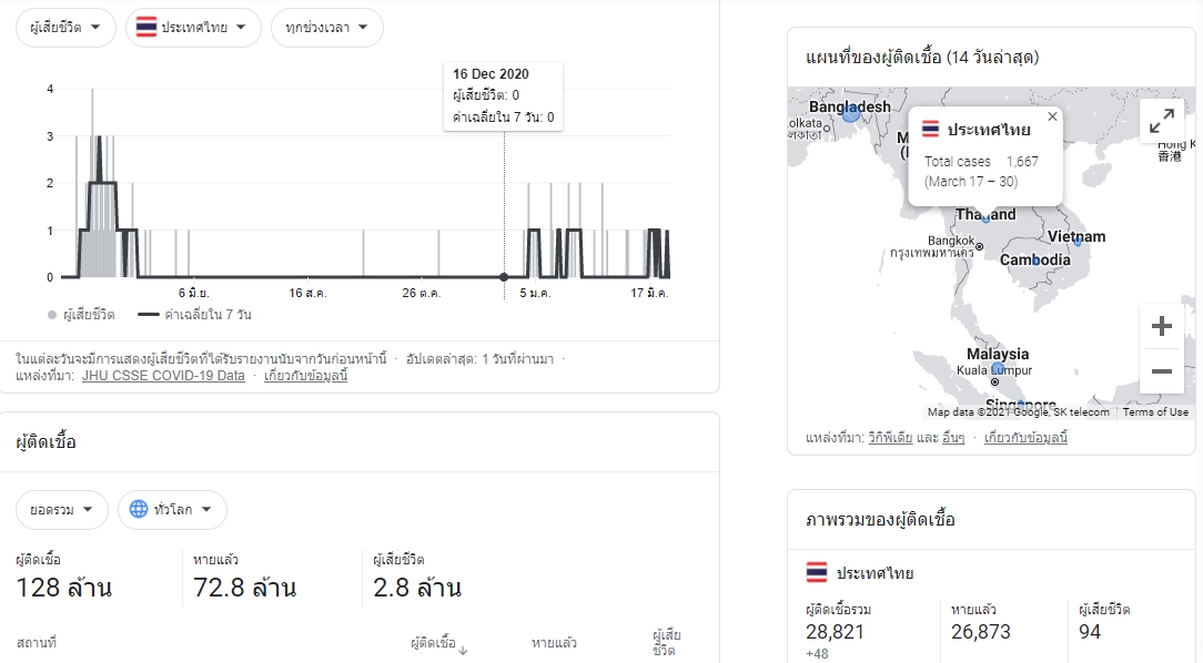 ยกตัวอย่างเช่นการค้นหาคำว่า ผู้เสียชีวิต Covid-19 ก็จะขึ้นผลลัพธ์แสดงขึ้นมาโดยผู้ใช้งานไม่จำเป็นต้องคลิกเข้าไปอ่านต่อเลย เพราะ Google ได้มีข้อมูลที่ดึงมาจากของ New York Times, Wikipedia และองค์การอนามัยโลกเป็นที่เรียบร้อยแล้ว หรือในทำนองเดียวกันการค้นหาสภาพอากาศของในแต่ละวัน ก็จะแสดงข้อมูลโดยที่ผู้ใช้ไม่ต้องคลิกเข้าไปในเว็บไซต์พยากรณ์อากาศ