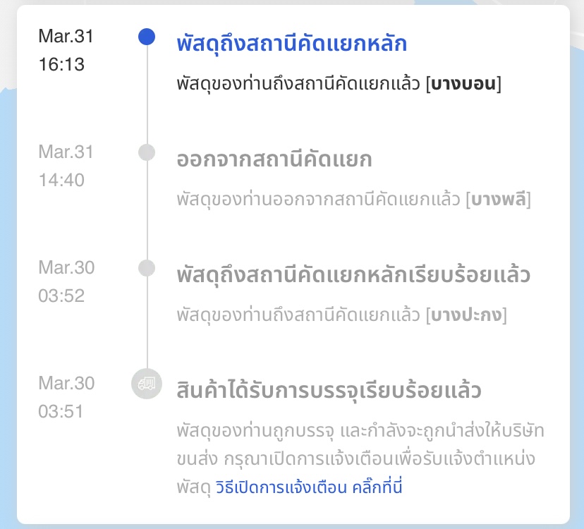 ปกติสั่งของกับ lazada บ่อยมากส่งสินค้าผ่าน lex th เป็นส่วนใหญ่การจัดส่ง2-3วันได้รับสินค้า แต่ครั้งนี้ร้านค้าได้นำส่งพัสดุที่จุด(drop-off) lex th บางบัวทอง ผ่านมา2วันแล้วยังไม่ส่งต่อพัสดุให้สาขาปลายทาง