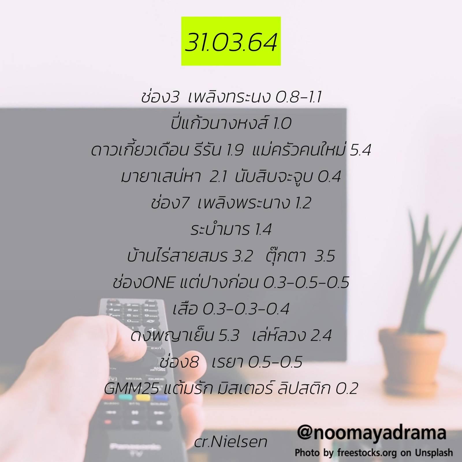 เรตติ้งประจำวันที่ 31 พฤษภาคม 64