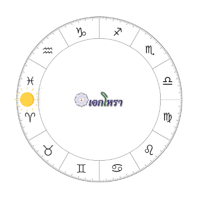 🌞 พระอาทิตย์อยู่ ♈ต้นราศีเมษ และตรงข้าม 180° เป็น ♎ ราศีตุลย์ (ดูภาพประกอบด้านล่างรูปดวงอาทิตย์)