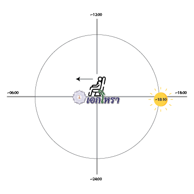 - โจทย์บอก เวลาเกิด 18:10 น. ก็ให้หาต่อไปว่า 🌞 พระอาทิตย์อยู่ด้านไหนของเรา?