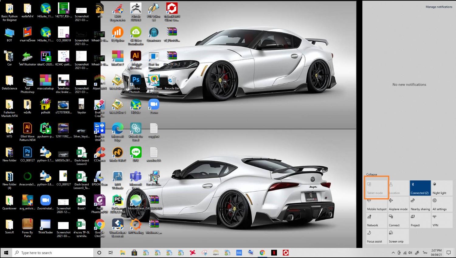 คอมเครื่องนี้ผมต่อหน้าจอ 4จอไว้สำหรับเทรด Forex พอดียกคอมไปให้ร้านเขาเช็คสงสัยว่าคอมตัวเองมีมัลแวร์ แต่พอยกไปที่ร้านเขาบอกว่ามันเข้าโหมด TabletMode ปิดยังไงก็ปิดไม่ได้ แต่พอยกมาที่บ้านปรากฏว่ามันก็ปิดการทำงานอยู่ผมเข้าใจว่าที่ร้านเขาคงเสียบสายหน้าจอเข้าผิดช่องมันเลยกลายเป็นว่ามันเข้า TabletMode ตลอด แต่ทีนี้พอผมต้องการปิด-เปิด TabletMode มันดันใช้งานไม่ได้แล้วตามภาพ ทั้งตรงส่วนที่เป็น Taskbar และในส่วน Setting มันไม่ทำงานตามภาพเลย ผมจะแก้ไขยังไงได้บ้างครับ ไปที่ร้านซ่อมคอมจะให้ผมลงวินโดวส์ใหม่ท่าเดียวเลย...แถมร้านเขาบอกปัญหาน่าจะมาจากการ Update Windows เพราะผมใช้ของแท้ เขาบอกเวลา Update บางทีโปรแกรมในเครื่องมักมีปัญหา Error เพราะมันไม่สเถียรประจำ ผมว่ามันไม่น่าจะใช่แล้วครับ...