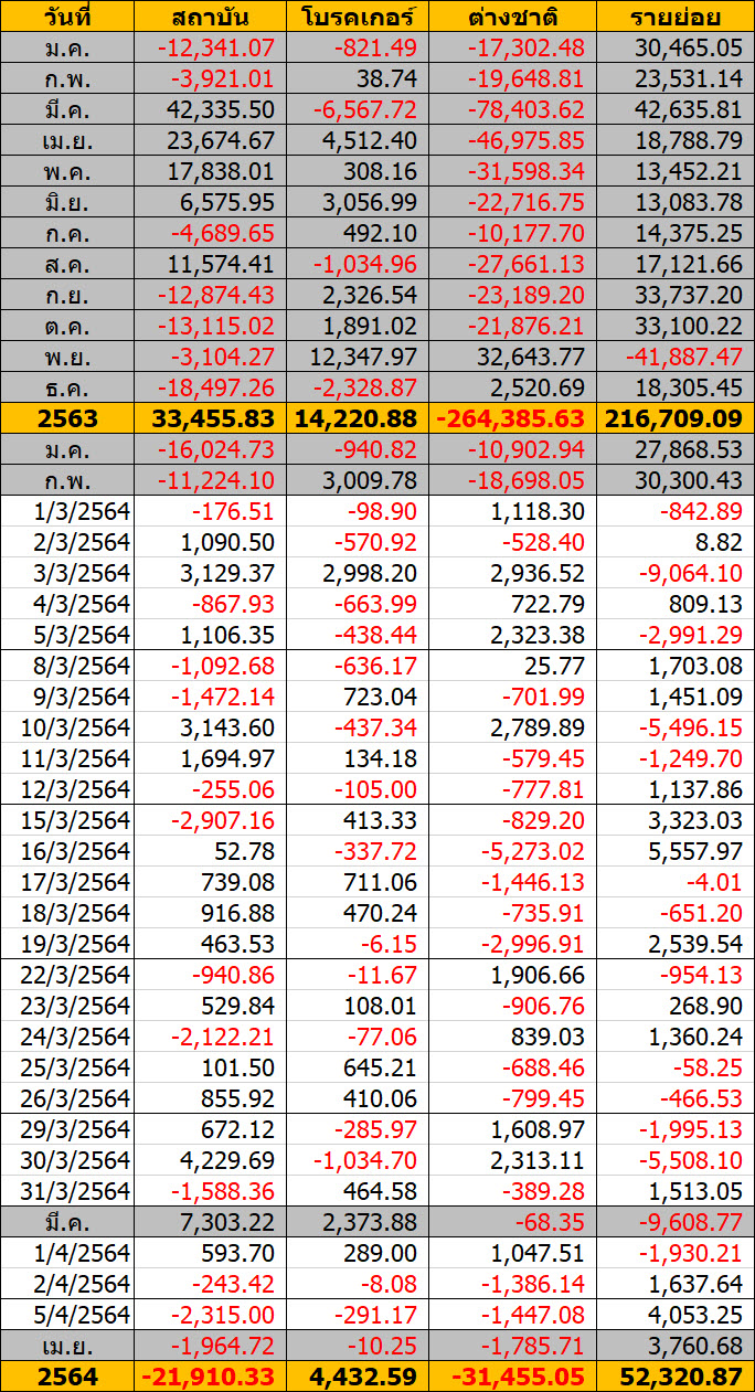 Sinthorn Summary 5/4/2564 : ต่างชาติขายสุทธิ -1,447.08 ลบ.