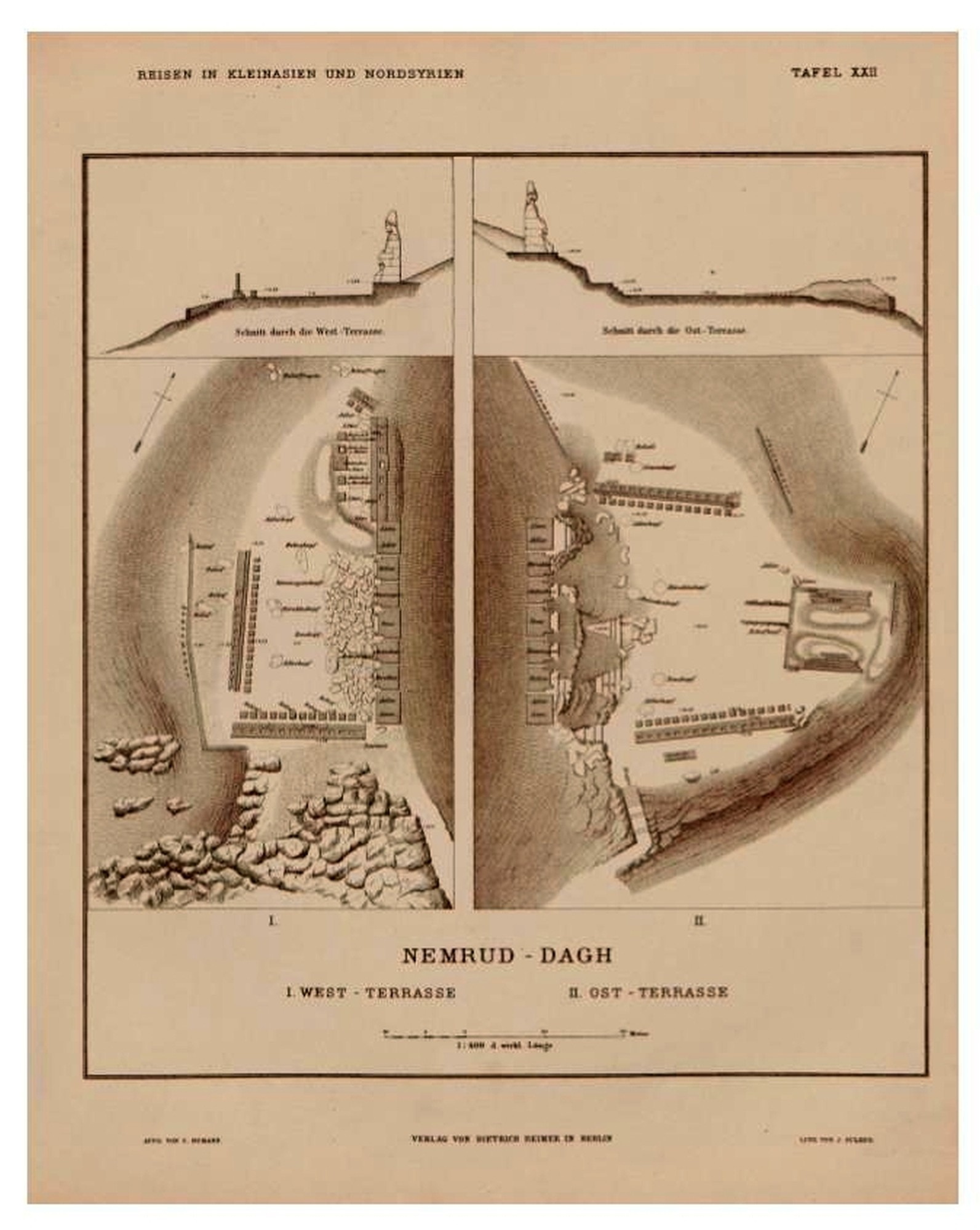 แผนของระเบียงตะวันตกและตะวันออกบนภูเขา Nemrut