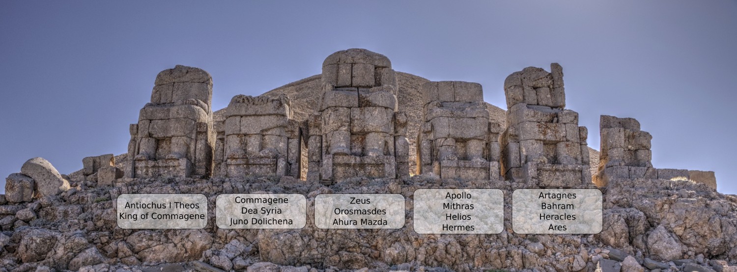 โดยรูปปั้นเหล่านี้เคยตั้งตั้งเรียงรายอย่างสง่างามโดยมีชื่อของเทพเจ้าแต่ละองค์จารึกอยู่ ส่วนหัวของรูปปั้นบางองค์ถูกนำออกจากร่างของพวกเขาและกระจัดกระจายไปทั่วบริเวณ และแม้ว่าจะมีการสันนิษฐานว่า Antiochus ถูกฝังอยู่ที่นั่น แต่จนถึงปัจจุบันยังไม่พบซากศพของเขา