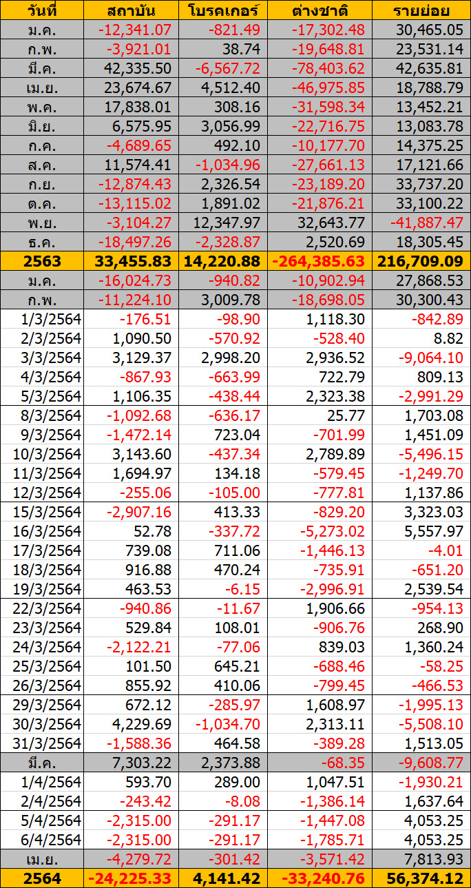 Sinthorn Summary 6/4/2564 : ต่างชาติขายสุทธิ -1,785.71 ลบ.