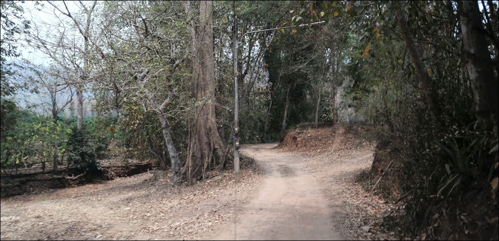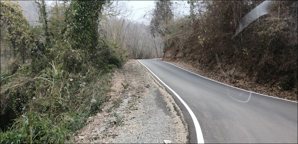 ถนนหลังจากที่เลี้ยวขวาที่วัดสบวินแล้ว บางช่วงเป็นคอนกรีต
