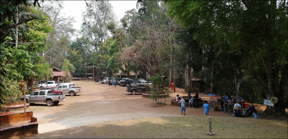 เราลงมาสู่พื้นราบด้วยเส้นทางเดิมหลังจากที่ไหว้พระและพักผ่อนอยู่บนนั้นราว 2 ชั่วโมง ซึ่งจากที่เราสังเกตนะครับ ที่นี่เป็นวัดสำหรับผู้ที่ต้องการมาปฏิบัติธรรม สำหรับนักท่องเที่ยวส่วนใหญ่จะมาเป็นหมู่คณะและขึ้นมาด้วยรถขับเคลื่อนสี่ล้อ ไม่ก็มอเตอร์ไซค์วิบาก โดยมีนักท่องเที่ยวบางกลุ่มขึ้นมาโดยการเดิน (วิ่ง) ประเภท trail running และบางกลุ่มก็เดินช้าๆ แบบแบกกล้องสองตาเพื่อวัตถุประสงค์ในการดูนกก็มี