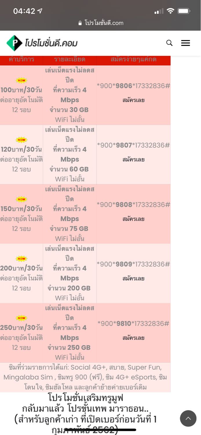 โปรทรู 100 บาท 30 กิ๊ก ต่ออายุ 12 รอบ สมัครไม่ได้เลย