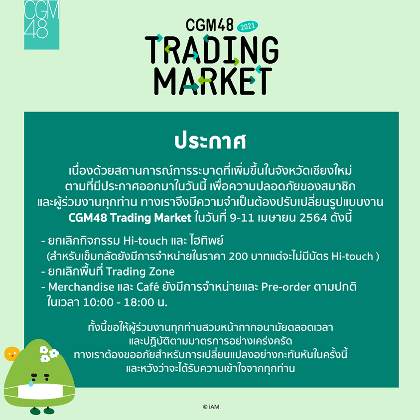 - ประกาศปรับเปลี่ยนรูปแบบงาน CGM48 Trading Market -
