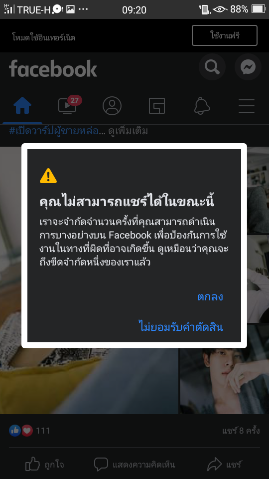 Facebookแชร์อะไรไม่ได้เลยค่ะ ทำไงดีคะ