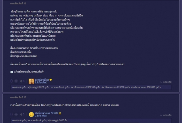 3.เวลานี้ควรให้กำลังใจดีที่สุด ไม่มีใครรู้ ไม่มีใครอยากให้เกิดนักแสดงท่านนี้ นางแย่มาก สงสาร พพเลย ฯลฯ