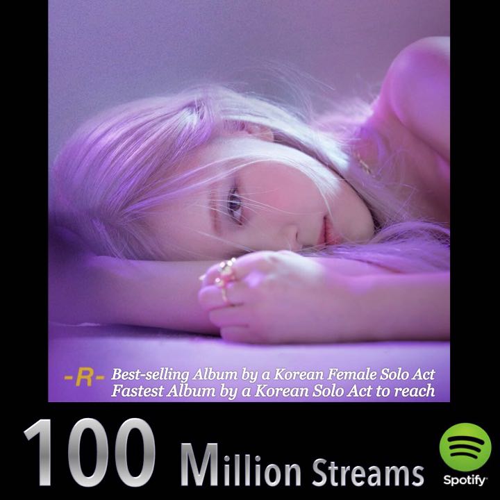 อัลบั้ม -R- อัลบั้มโซโล่ของโรเซ่ blackpink กลายเป็นอัลบั้มจากศิลปินเดี่ยวเกาหลีที่มียอดผู้ฟังถึง 100M เร็วที่สุดบน Spotify