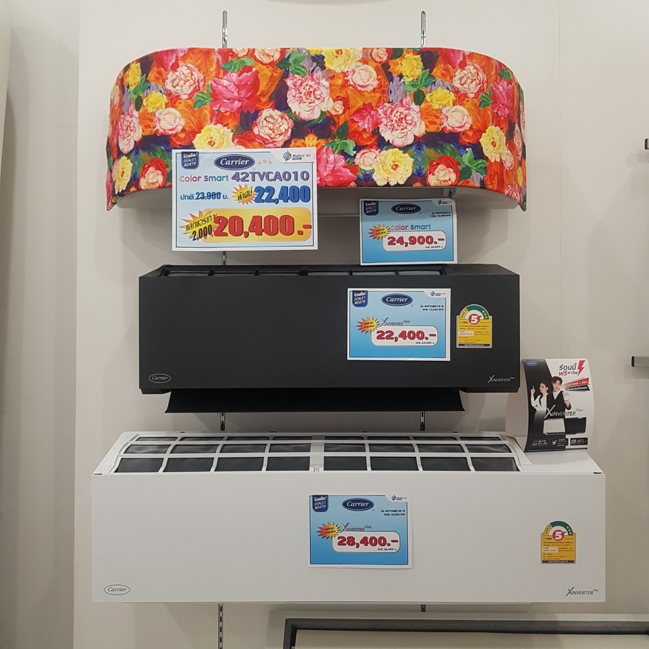 ตอนแรกเล็งของ Carrier ไว้ เพราะมีโปรคืนค่าไฟอยู่ แต่พอเข้าไปดูที่หน้าร้านจริงๆ เห็นว่ามีถึง 3 ยี่ห้อ ที่มีโปรโมชั่นคืนเงินให้เมื่อซื้อแอร์เหมือนๆกัน ได้แก่ Carrier Daikin Panasonic ( แบบนี้ดีผู้บริโภคอย่างเราๆ ได้ประโยชน์ )