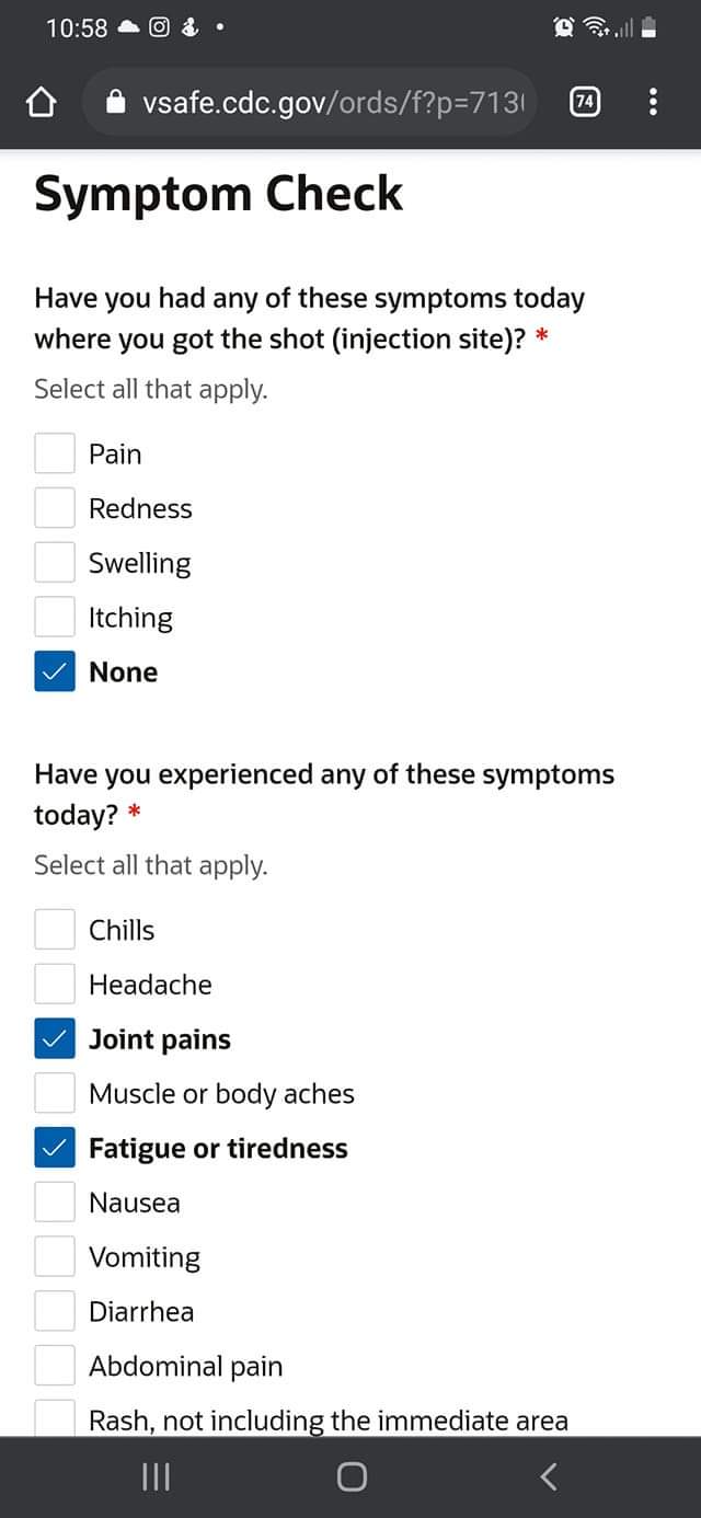 ทางที่ฉีดวัคซีนจะให้ตัว tracker ของ CDC มาเค้าจะบันทึกอาการข้างเคียงของคนที่ได้ฉีดในแต่ละวัน