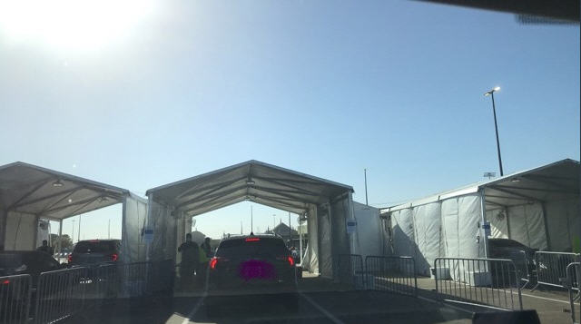 ที่ไป เค้าไม่ได้ฉีดใน รพ. หรือคลีนิค ทางเขตให้ใช้พื้นที่ลานจอดรถของสนามกีฬาในการจัดฉีดแบบ drive-thru. บางที่ก็ใช้ศูนย์ประชุม