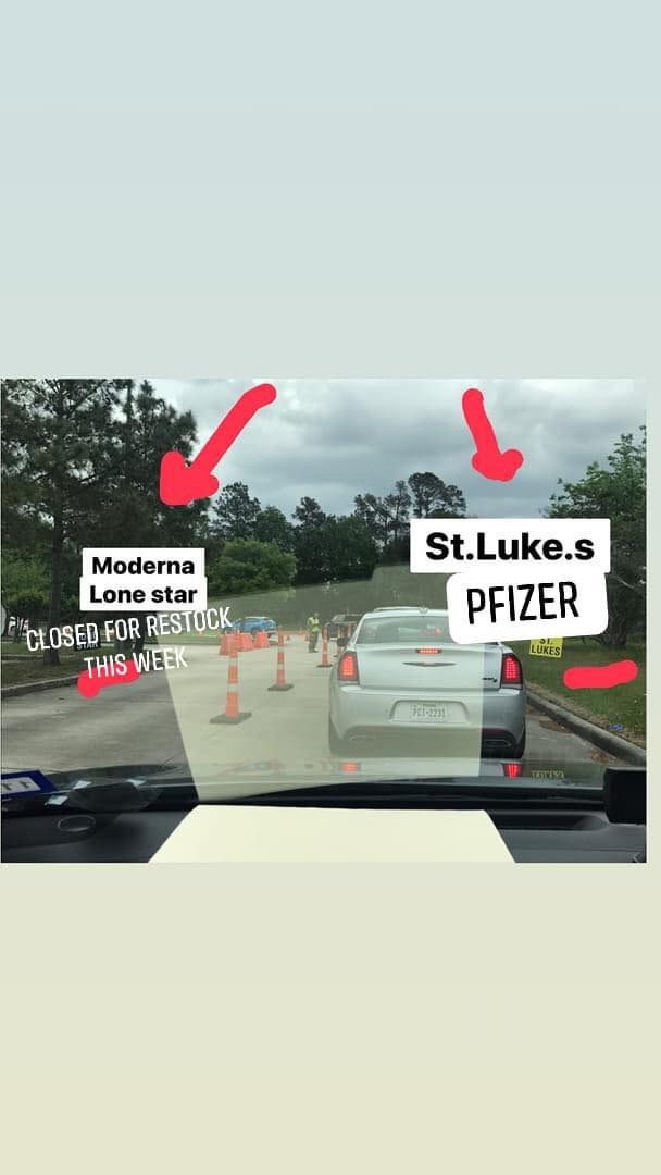 โดยเราไม่สามารถเลือกประเภทวัคซีนได้ในช่วงแรก ซึ่งภายหลังเป็นที่ทราบว่า Lonestar ฉีด Moderna และ St.Lukes' ฉีด Pfizer. ส่วนที่ร้านขายยา หรือ Hypermarket ก็แตกต่างกันไปแล้วแต่วัคซีนที่ได้จัดสรรมา ในสามตัวนี้ Pfizer, Moderna, J&J (เพิ่ง Pause ไปเร็ว ๆ นี้)