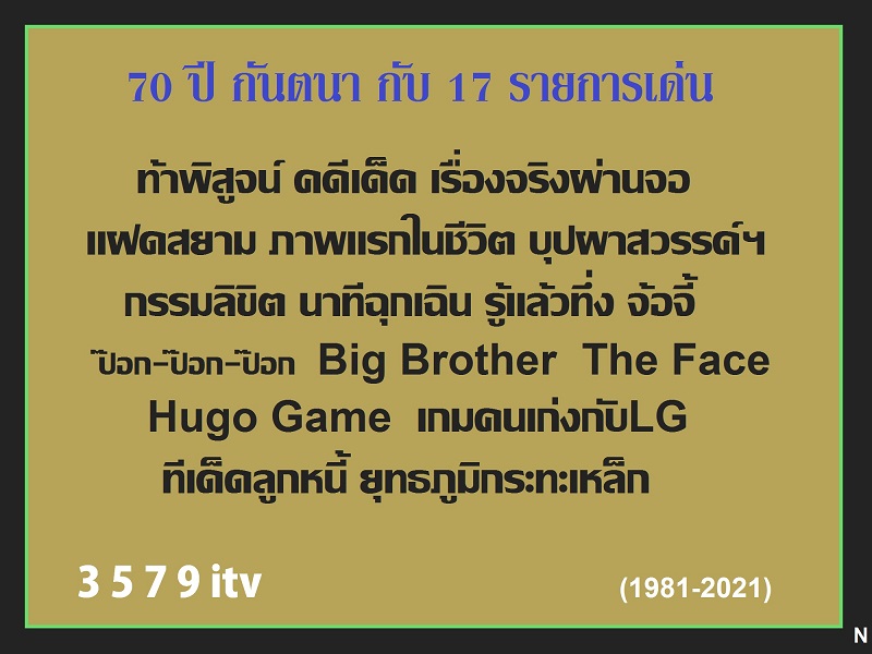 ฉลอง 70 ปี "กันตนา" ไปกับ 17 รายการเด่นในดวงใจ(...คุณชอบดูอะไรเอ่ย?)