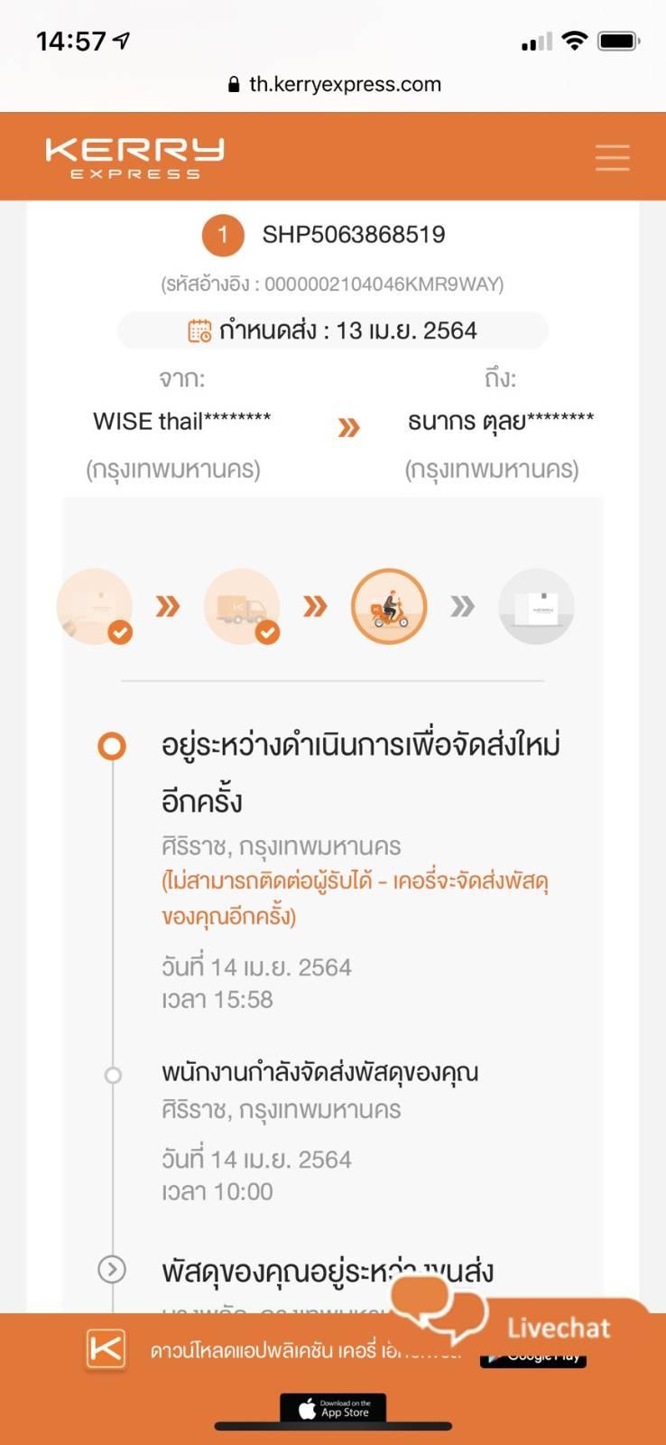 Kerry ไม่โทรมาหาเรา และบอกว่าติดต่อผู้รับไม่ได้ สถานะกำลังจัดส่งมาสองวันแล้ว มือถือชาร์ตตลอด คนอื่นก็โทรเข้า แต่มาลงว่าติดต่อผู้รับไม่ได้ ซื้อของshopee เก็บเงินปลายทาง ขนส่ง kerry ปัญหาเยอะที่สุด อ้