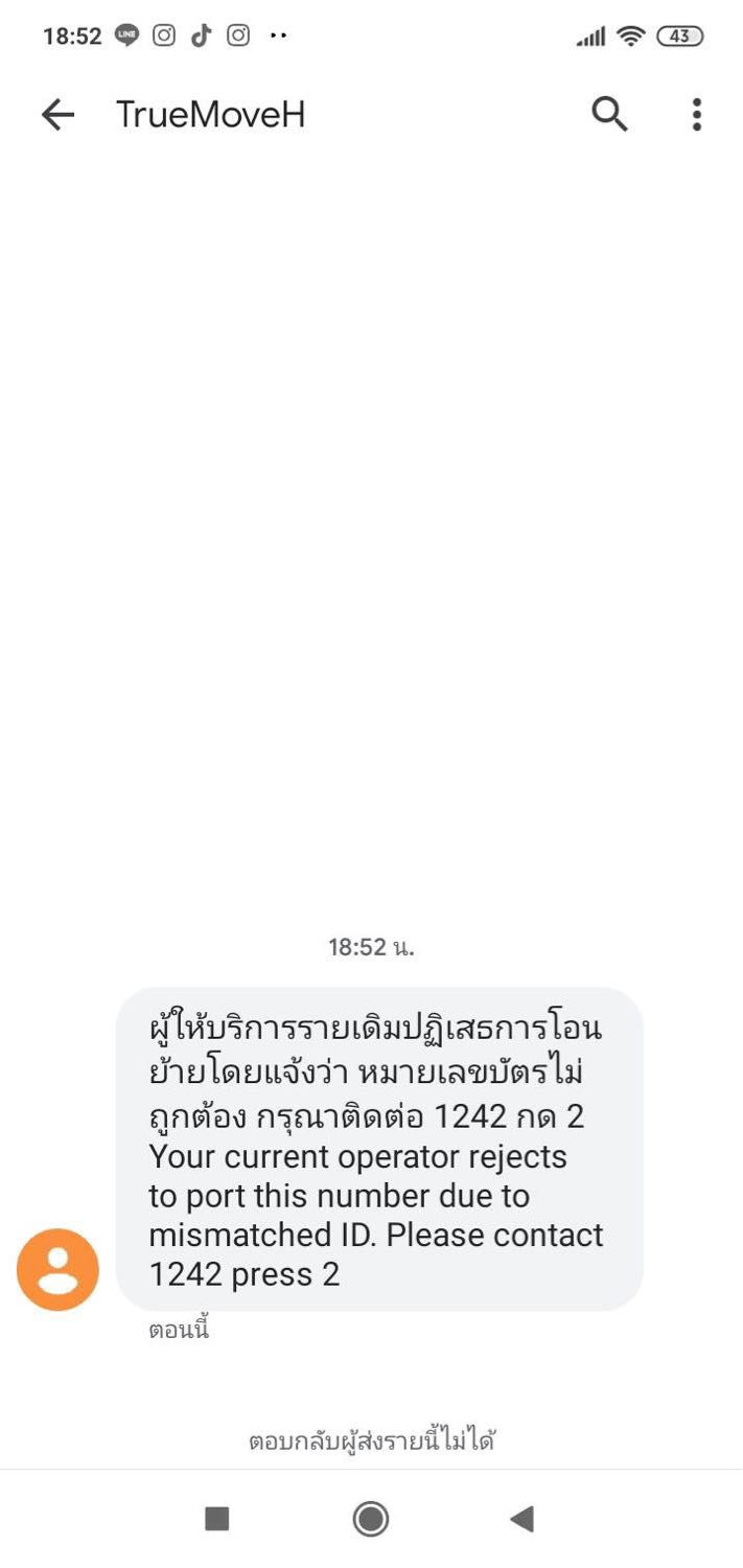 แต่วันนี้ได้รับ sma ตามรูปครับ เลยสงสัยว่าติดปัญหาตรงไหน ทำไมถึงย้ายค่ายไม่ได้ครับ