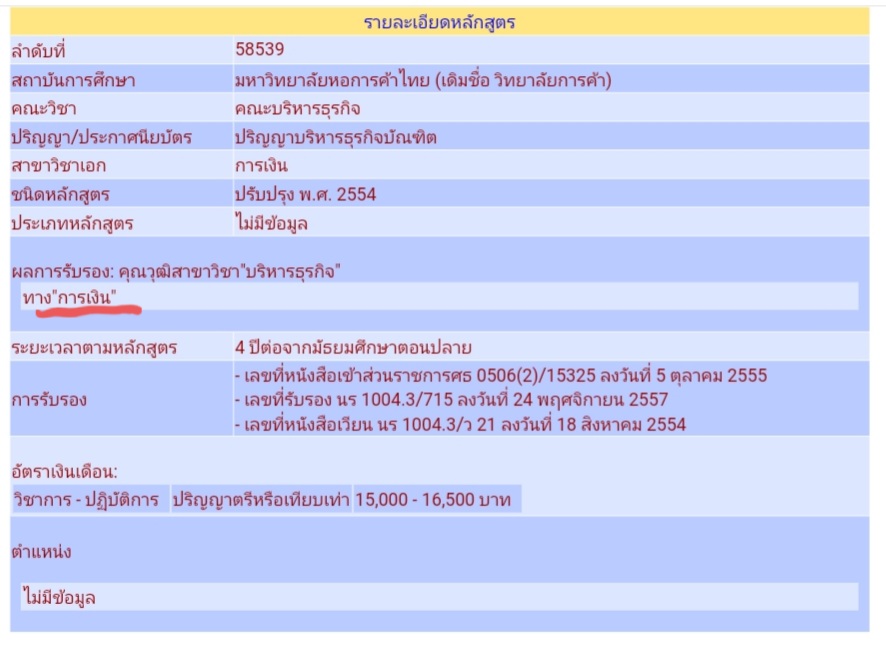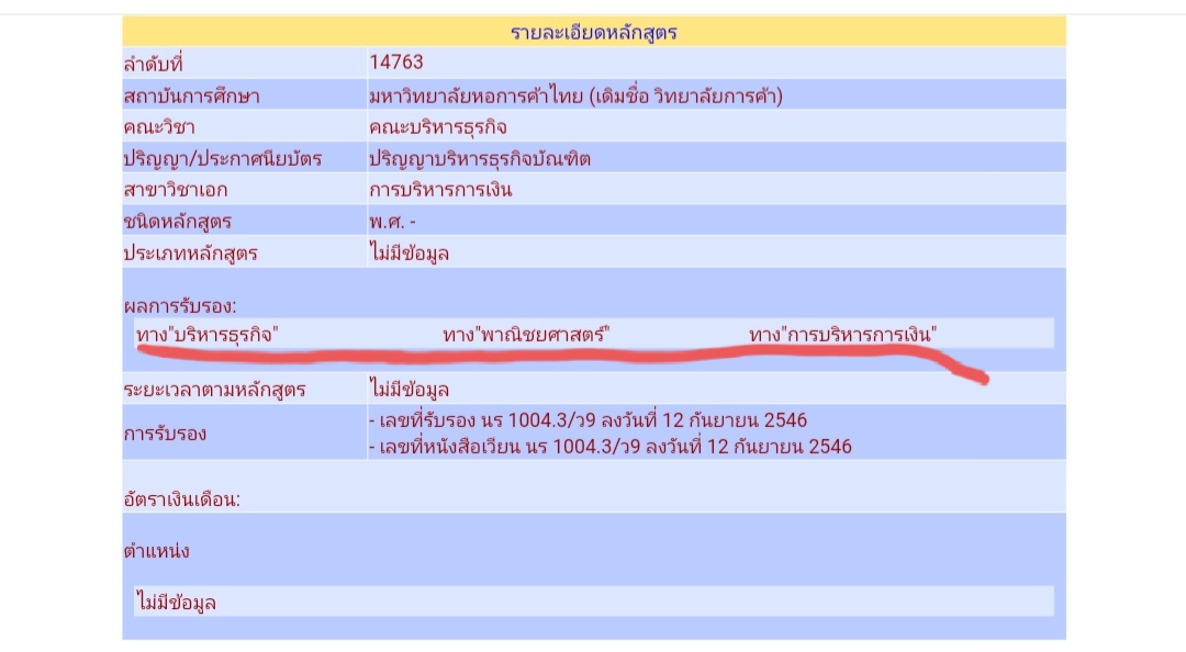 ปล.สอบถามเพิ่มครับ ผลการรับรอง คุณวุฒิสาขาวิชา บริหารธุรกิจ