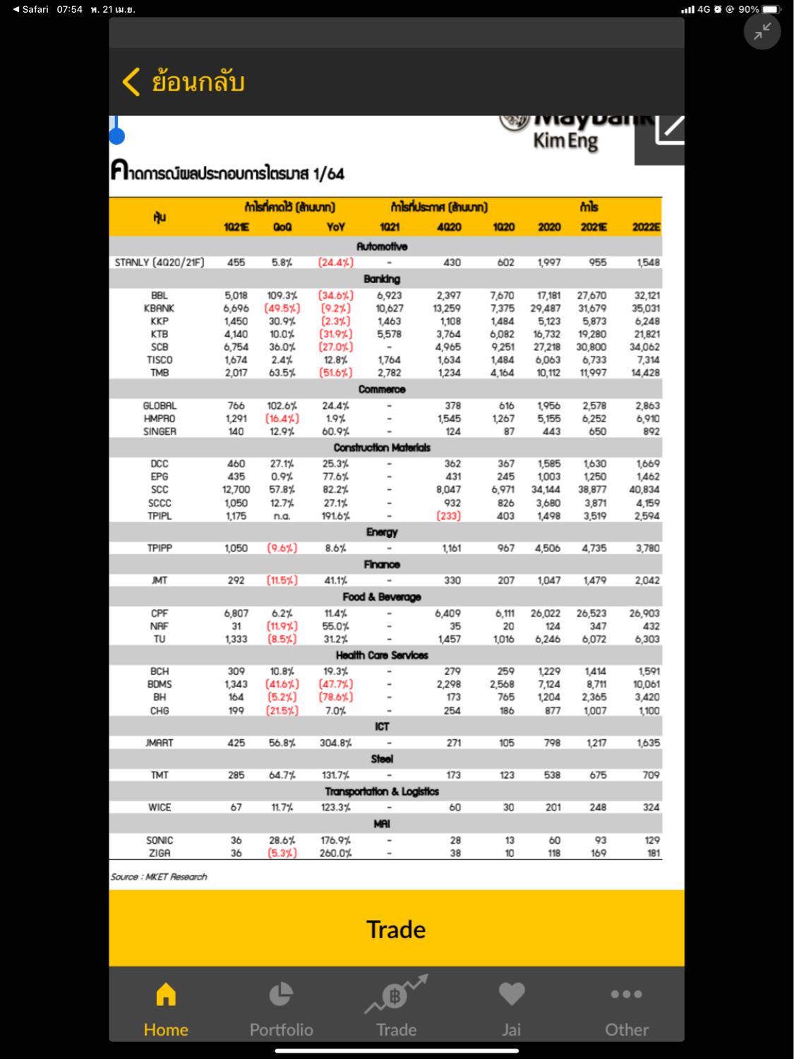 คาดการณ์กำไรกลุ่มธนาคาร Q3/64
