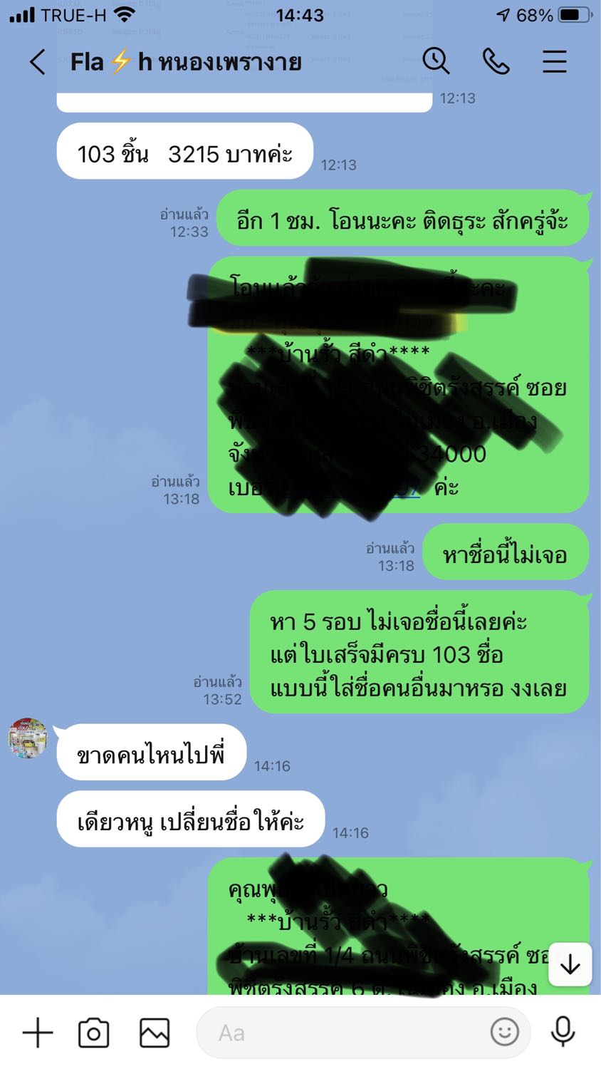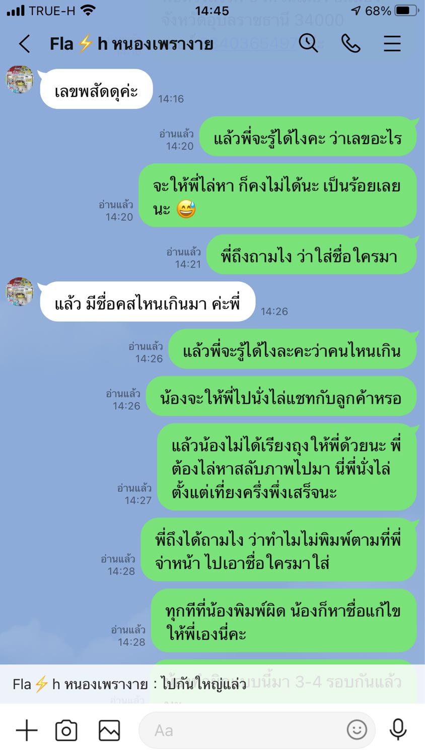 เราก็จะส่งไลน์ไปบอก พนักงานก็จะหาของมาพิมพ์แก้ใหม่ แล้วแจ้งเลขมาใหม่ ซึ่งผิดแบบนี้มา 4-5 ครั้ง