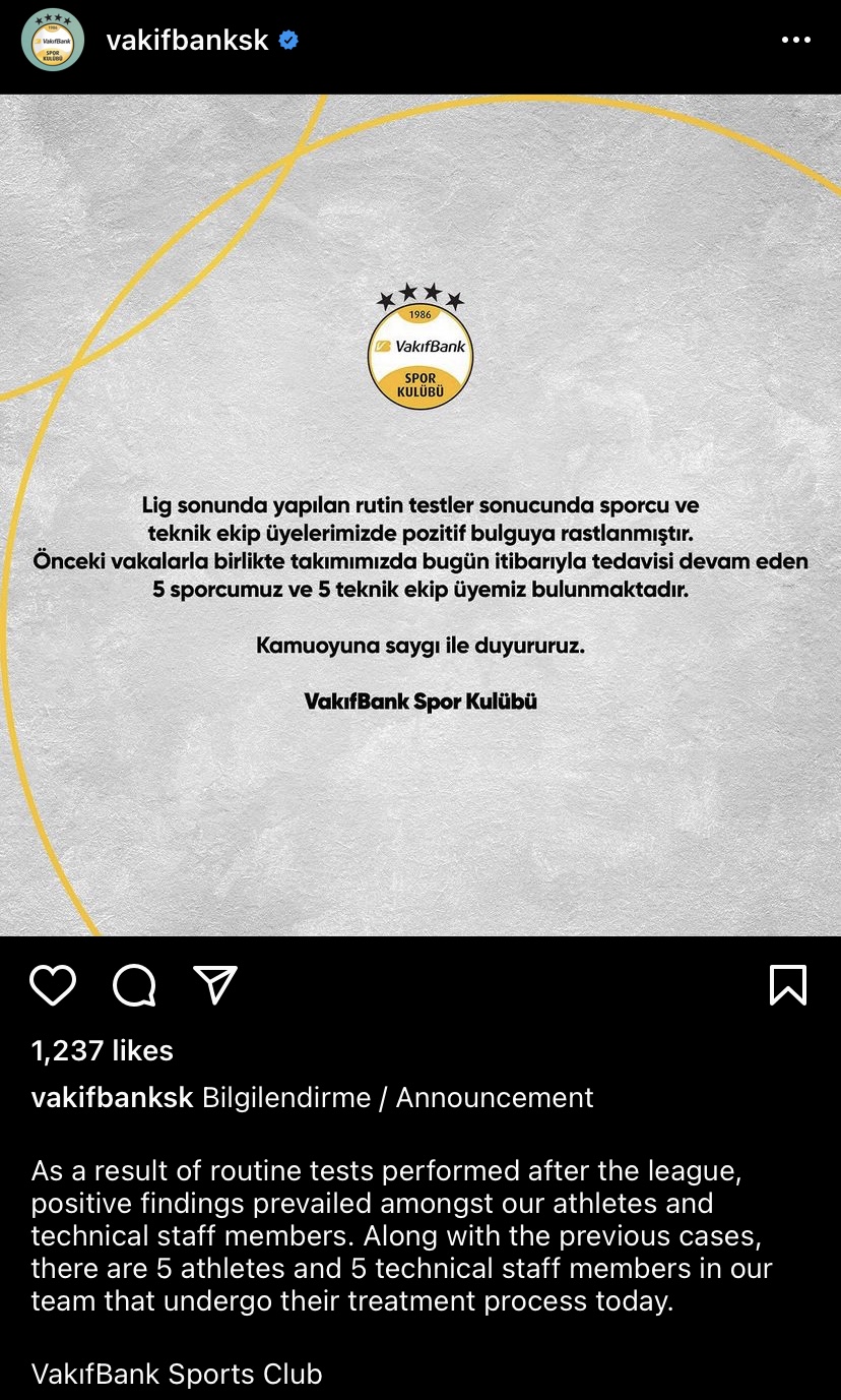 Vakifbank มีคนติดโควิด 10 คน!!!!