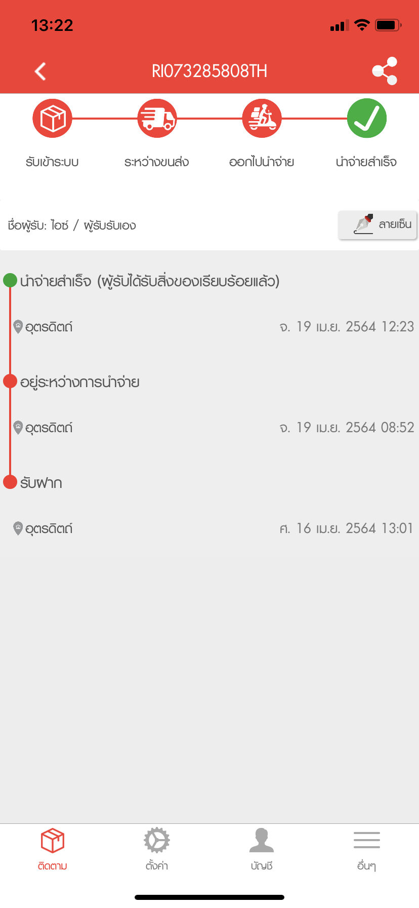 ส่งของตั้งเเต่ วันที่ 13:04:2020 เวลา 12:13:03 จนตอนนี้วันที่ 24/04/2020 ยังไม่ได้ของเลย ขึ้นว่า ‘นำจ่ายไม่สำเร็จ’ เลขพัสดุ => RU96415575TH