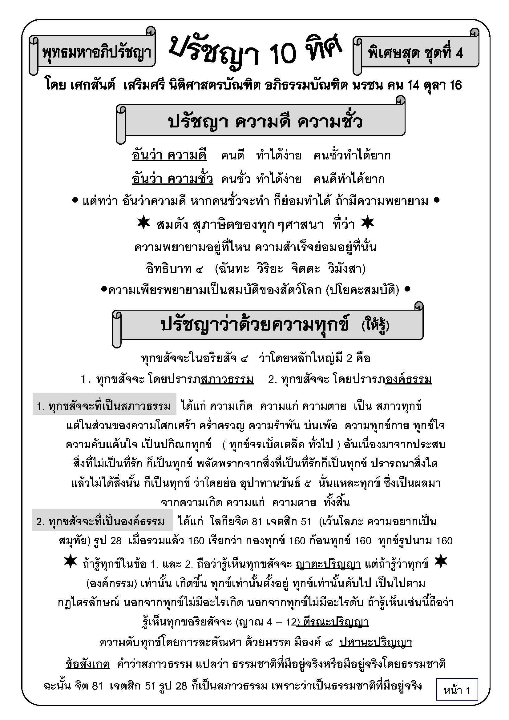 ปรัชญา ๑๐ ทิศ ชุดที่ ๔