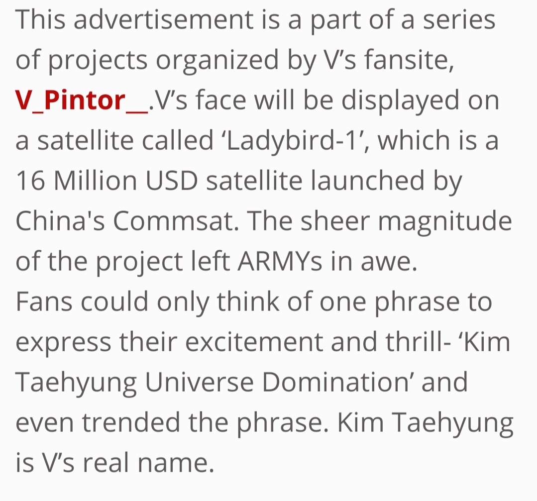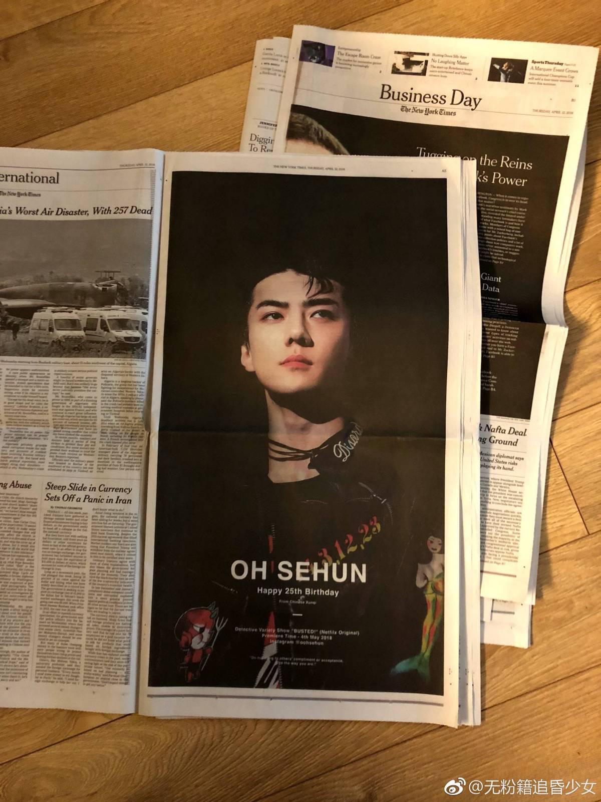 เซฮุนบาร์ เช่าเกาะ เหมาอัลบั้ม เช่าเครื่องบินเพ้นท์ลายเซฮุน มีการซื้อ โฆษณา ฉาย จอLED ตึกสูงสุดในโลกที่ ดูใบ ซื้อโฆษณาเต็มหน้าหนังสือพิมพ์ นิวยอร์ค ไทม์ ถ้าจำไม่ผิดน่าจะเป็นคนแรก เช่าสวนสนุกทำโปรเจคให้ มีการซื้อโฆษณาฉายภาพ บนตึกหลายๆตึกในจีน ถ้าจำไม่ผิดมีการซื้อที่ดินในสกอตแลนด์ แลนด์ให้ด้วย มั้ง ที่ได้ศักดิ์เป็น ลอร์ดเซฮุน