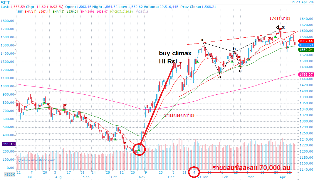 bearish divergent ทำจุดสูงสูดของรอบ......หลังจากนั้นก็เข้า เฟสแจกจ่าย..