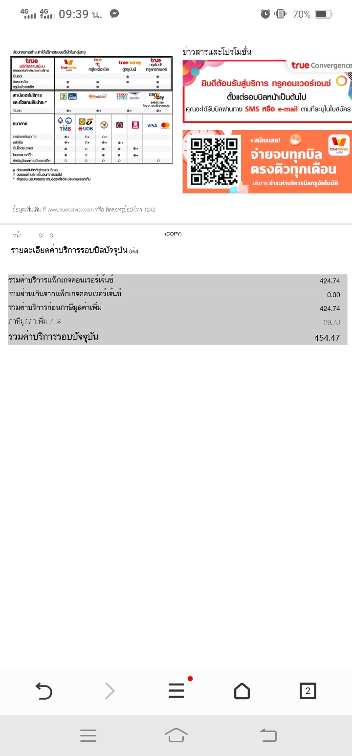 ค่าบริการเน็ตบ้านทรู200/200M