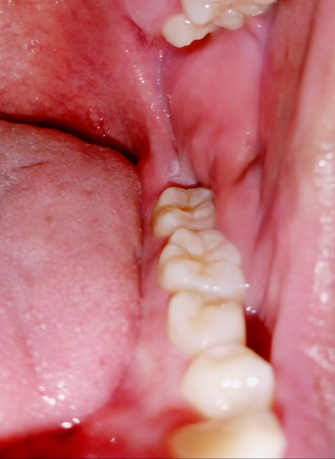 คือว่า มีอาการเจ็บเหงือกซ้ายบนเวลาเคี้ยวอาหาร และตอนฟันขบกัน ทำให้ต้องใช้ข้างขวาเคี้ยวข้างเดียวมีปัญหาในการทานอาหาร เพราะใช้เวลานานขึ้น และบางครั้งถ้าเคี้ยวอาหา
