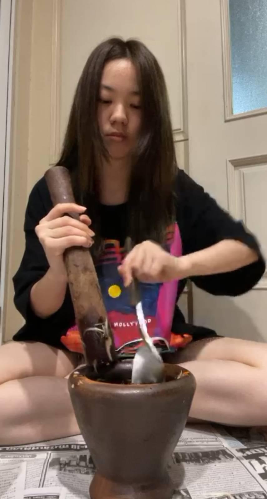 หลังจากตำไปแล้ว1ครกก็เลยมาตำอีกครกให้พี่เลี้ยง