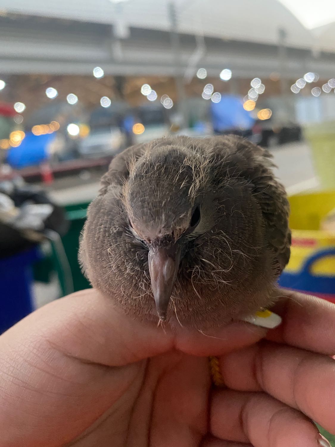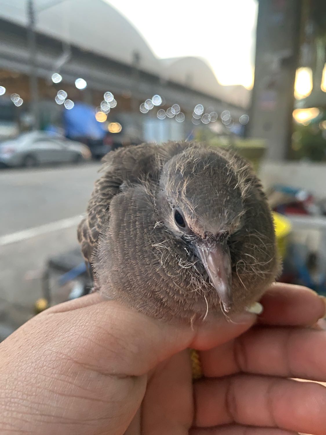 มันมาจากไหนไม่รู้มันน่าจะยังเป็นลูกนกเพราะยังบินสูงไม่ได้เลยอยากทราบว่าคือนกอะไร