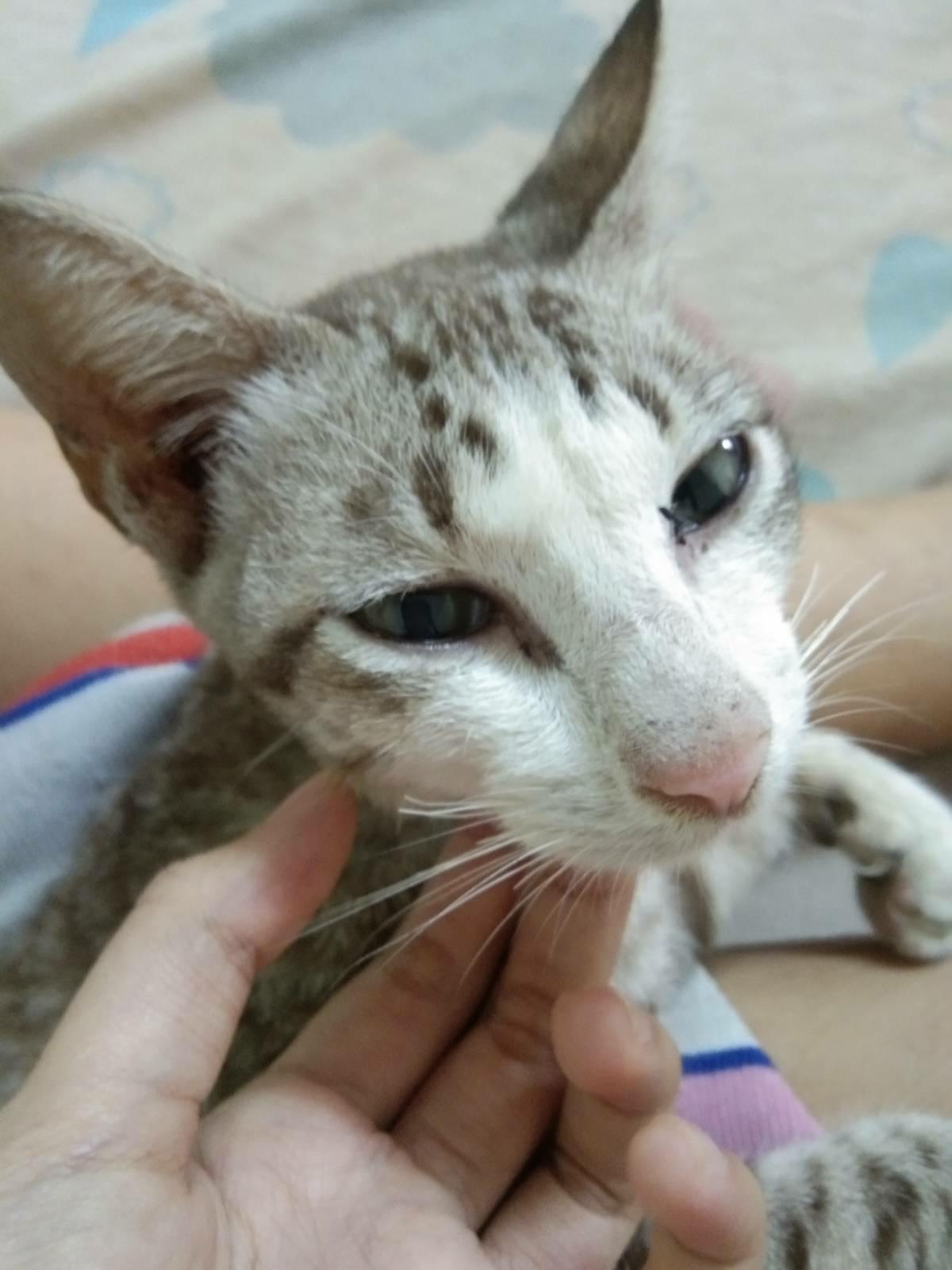 แมวตาข้างนึงมีน้ำตาไหล