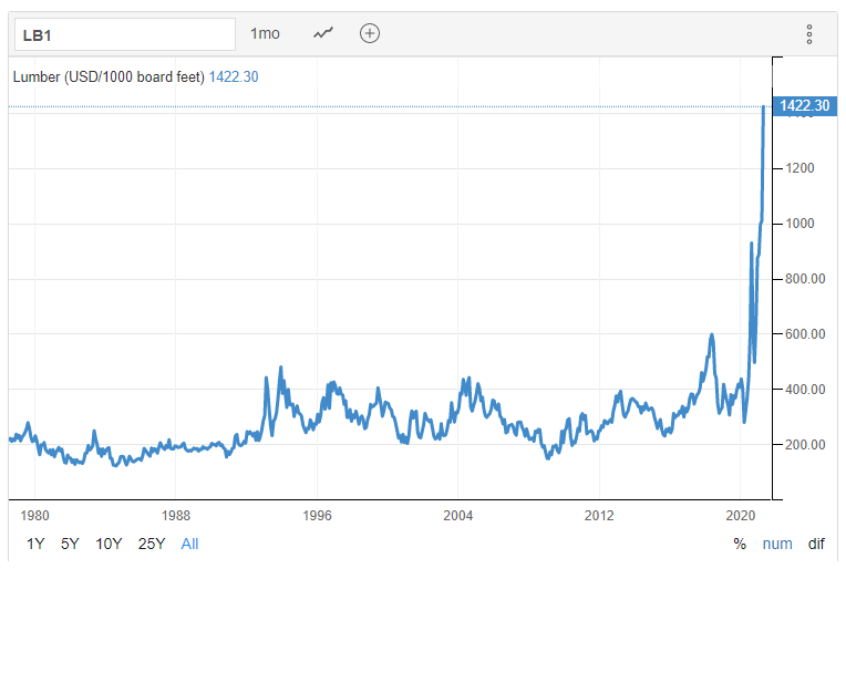 ราคาไม้โลกทำ All Time Hight ในรอบ 41 ปี ขาดแคลนไม้ไปทั่วโลก เนื่องจากการตายของโควิดในอินเดีย ต้องนำเข้าไม้เพื่อเผาศพ ทำให้ราคาไม้โลกทุกชนิดขาดแคลนหนัก ทำสถิติสูงสุดตลอดกลาล คาดว่าราคาไม้จะขึ้นสูงตลอดป