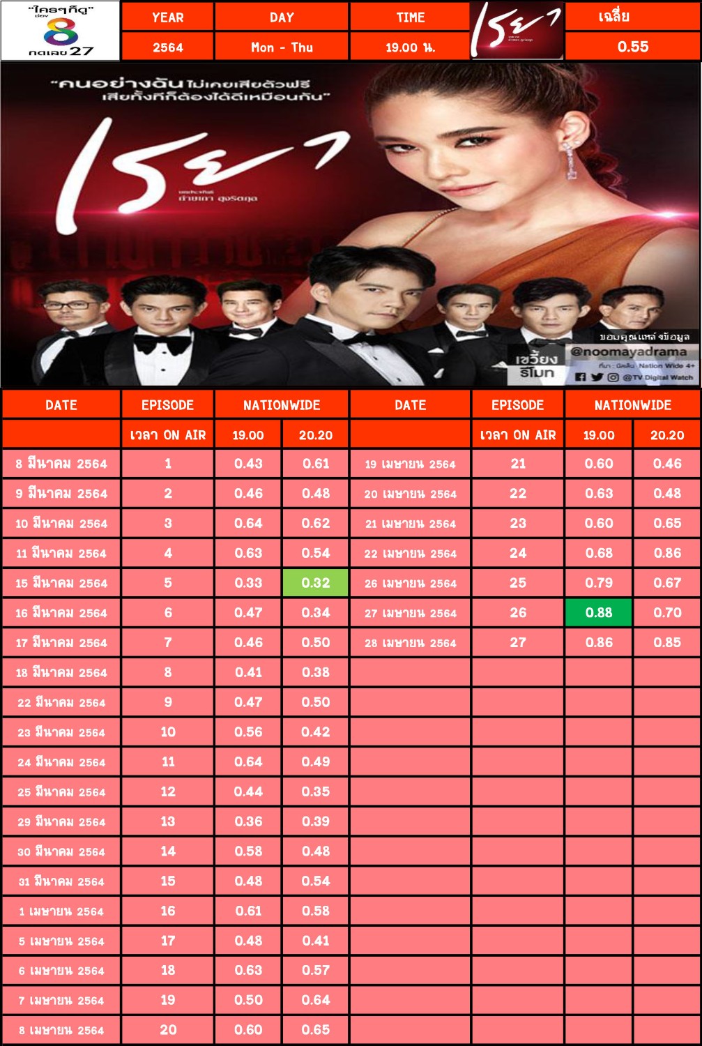 เรตติ้ง เรยา คุยกับฟ้าต้องคุยภาษาเงิน ละคร เรื่องแรกของปี 2564 ของช่อง 8