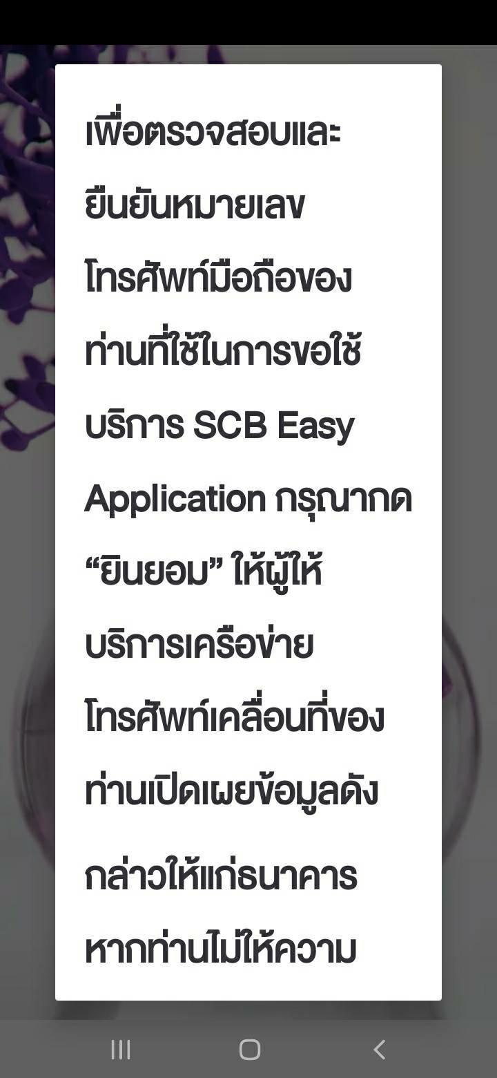 App SCB ขึ้นหน้าตาแบบนี้เราต้องกด ยินยอม ให้ผู้บริการเครือข่าย เปิดเผยข้อมูล